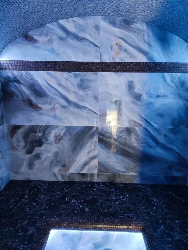 Мастер Никита из Ульяновска использует керамогранит с мозаикой на материалах «Руспанель». Интересное дизайнерское решение, и отличная реализация в частном доме! Так, вот такой хамам получился у нас. Каркас сделан из «Руспанель». Сделаны теплые стены, лежаки. Пол - мозаика, купол - мозаика. Стены керамогранит. Лежаки тоже из керамогранита сделаны. Закругление из мозаики. И пояс еще из мозаики. Вот такая красота. 📌 Хотите, чтобы на объекте все прошло гладко? Свяжитесь с нами 👇 📩 ruspanel.ru 📞 8 800 222-12-52 #Руспанель_объекты