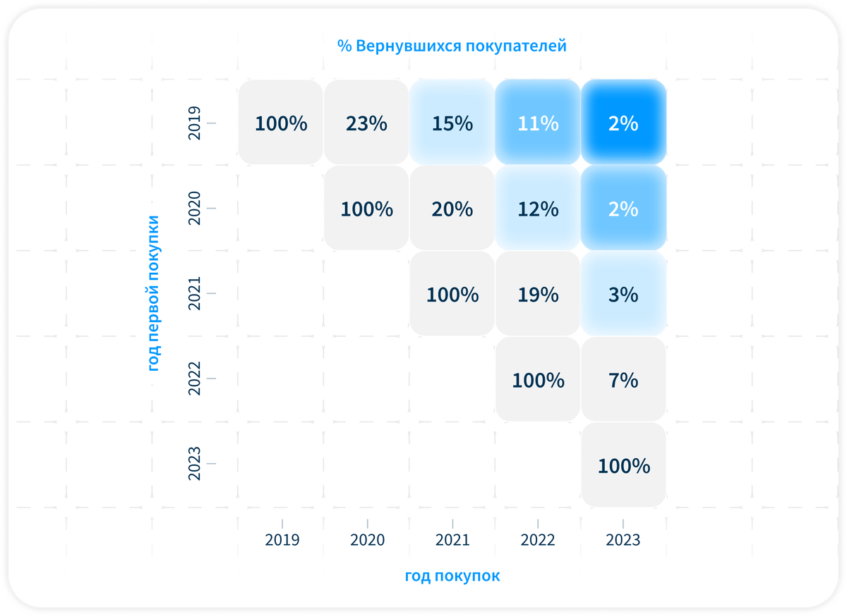 Однако со временем механика программы привела к системным проблемам Отсутствие мотивации к использованию баллов из-за их бессрочности. Для примера, покупатели, у которых было всего 2 чека за год, в 40% случаев почти не использовали накопленные баллы. В сегменте электроники и бытовой техники, где решение о покупке созревает месяцами, а то и годами, классические программы лояльности часто теряют эффективность.