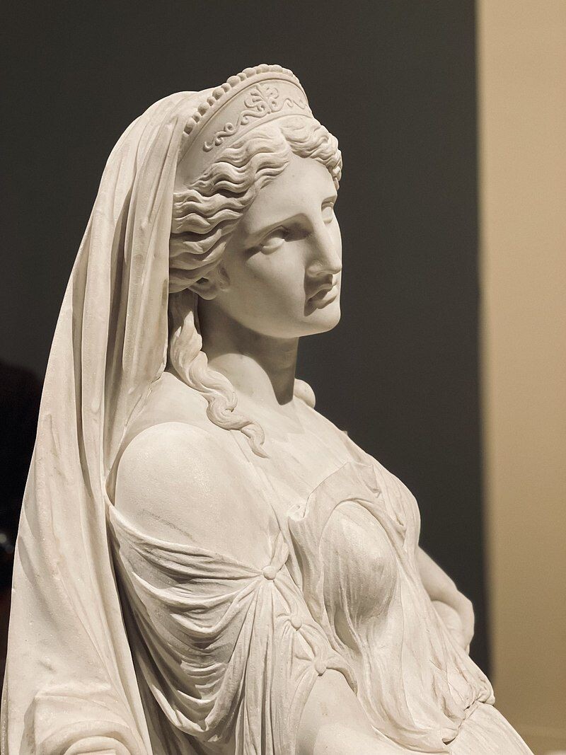 На самом деле античная скульптура была полихромной — яркой, даже пестрой. Исследования с использованием ультрафиолета и инфракрасного анализа доказали, что мраморные поверхности покрывались слоями краски, воска и позолоты . Греческие мастера не просто «раскрашивали» статую, они «оживляли» её. Цвет выполнял функцию имитации реальности: глаза казались влажными благодаря окраске радужки, губы приобретали чувственность, а одежды — фактуру и весомость .