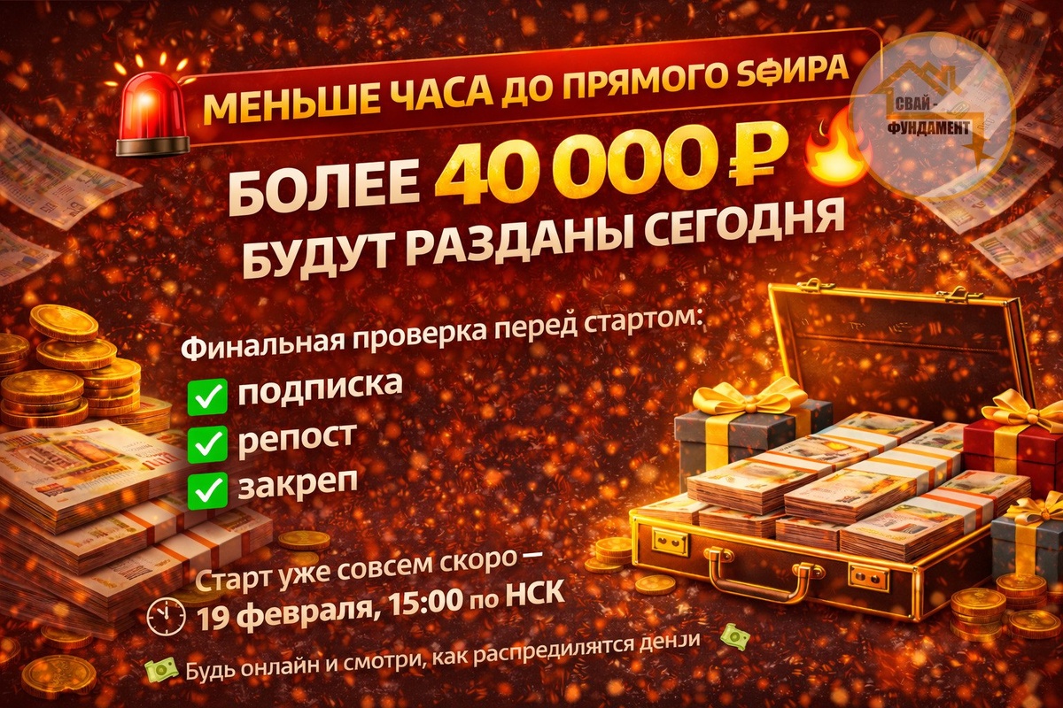 🚨 🔥 БОЛЕЕ 40 000 ₽ БУДУТ РАЗДАНЫ СЕГОДНЯ 🔥 Финальная проверка перед стартом: ✔ подписка ✔ репост ✔ закреп Если чего-то нет — ты просто вылетаешь из списка. ⏰ Старт уже совсем скоро — 19 февраля, 15:00 по НСК Будь онлайн и смотри, как распределяются деньги 💸 👉 Пост с условиями: https://vk.ru/wall-234762408_2955 Через час уже будет поздно.