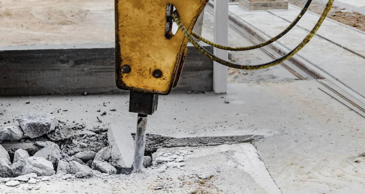 Гидромолот остаётся одним из самых распространённых инструментов разрушения армированного бетона. Его главное преимущество - высокая производительность при относительно невысокой стоимости оборудования. При работе на открытых площадках и в условиях отсутствия ограничений по вибрации он обеспечивает быстрый темп разрушения.