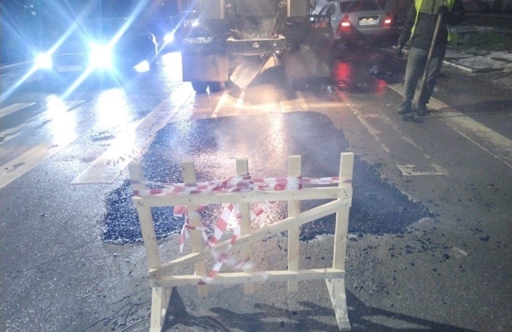 Ночью в Таганроге провели ремонт дорог на перекрестках улиц Бабушкина и Щаденко