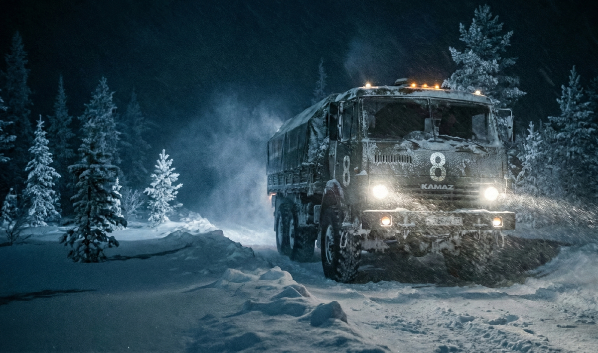 Илья, которого на трассе все давно звали просто Седой, уверенно вел свой тяжелый тягач сквозь пелену снегопада. Дворники мерно смахивали тяжелые хлопья со стекла, а свет мощных фар с трудом пробивал белую пелену.