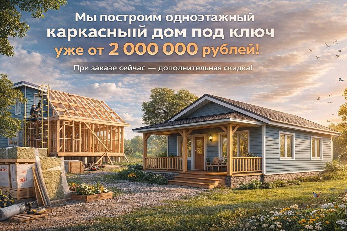 Мы строим современные одноэтажные каркасные дома под ключ — быстро, качественно и по разумной цене