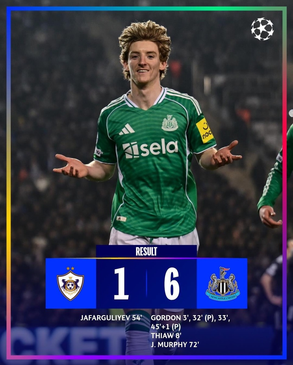 «Ньюкасл» решил все вопросы противостояния за один тайм. «Сороки» съели «Карабах» на их поле и ничего не позволили подопечным Гурбанова. Энтони Гордон стал лишь вторым игроком в истории ЛЧ, который забил 4 гола за первый тайм.
