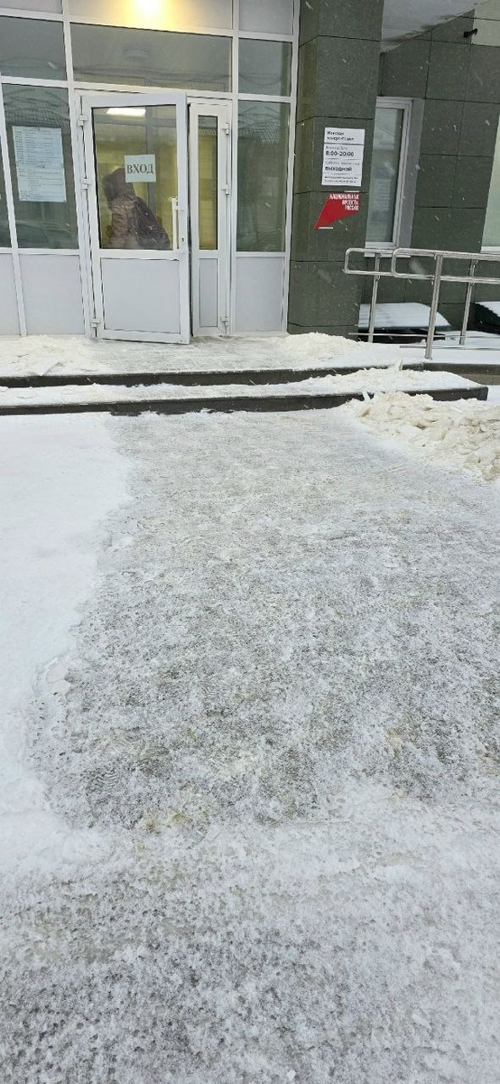 Она сопровождала свою пожилую маму, чтобы та попала на приём к специалистам. Однако подход к медицинскому учреждению оказался в плачевном состоянии: тротуары и дорожки покрылись плотной ледяной коркой, превратившись в подобие катка. Никаких следов обработки противогололёдными составами заметно не было. Пенсионерам, которые направляются в поликлинику за помощью, приходится буквально балансировать на льду, рискуя в любой момент упасть и получить серьёзные повреждения. Женщина с горькой усмешкой поинтересовалась, не стоит ли теперь разработать новый маршрут для пациентов: сперва заходить в травмпункт зашивать раны, полученные по дороге к врачам, и только потом — на приём. ______________ 🦁 подпишитесь на 👉 Белгородский край