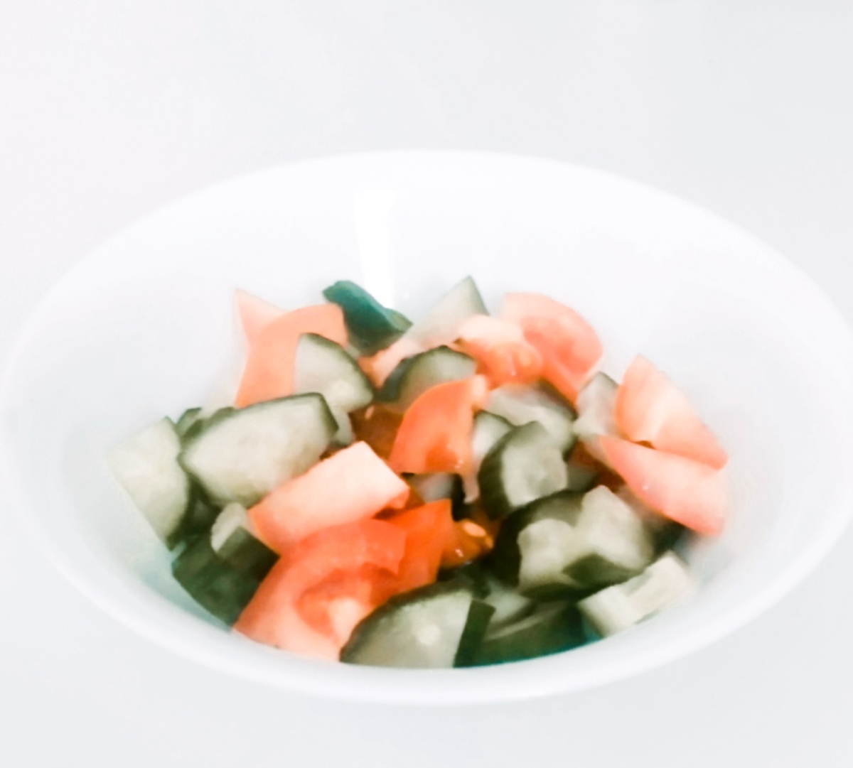 Огурец и помидор произвольно порезать, приправить солью, маслом и перемешать.
