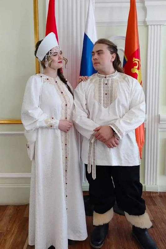 Молодожёны выбрали для свадьбы в Красноярске народные костюмы ручной работы