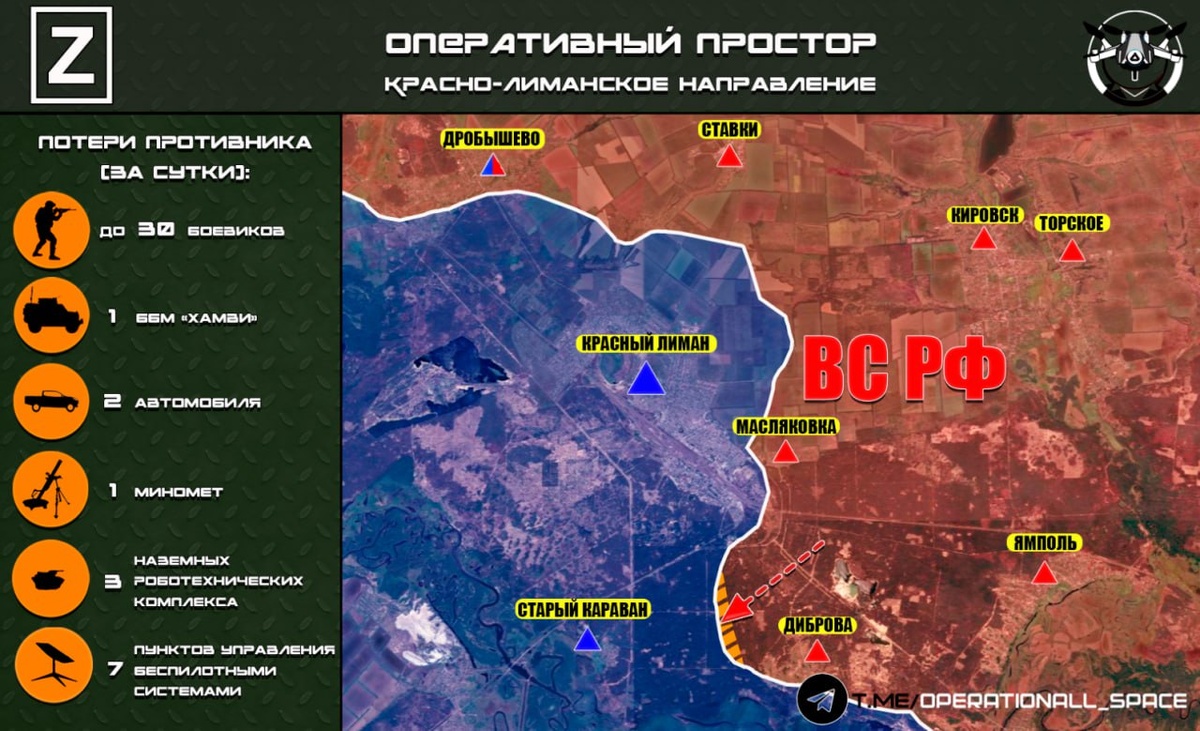 🇷🇺На Красно-Лиманском направлении ВС РФ продолжают наступление юго-восточнее Красного Лимана