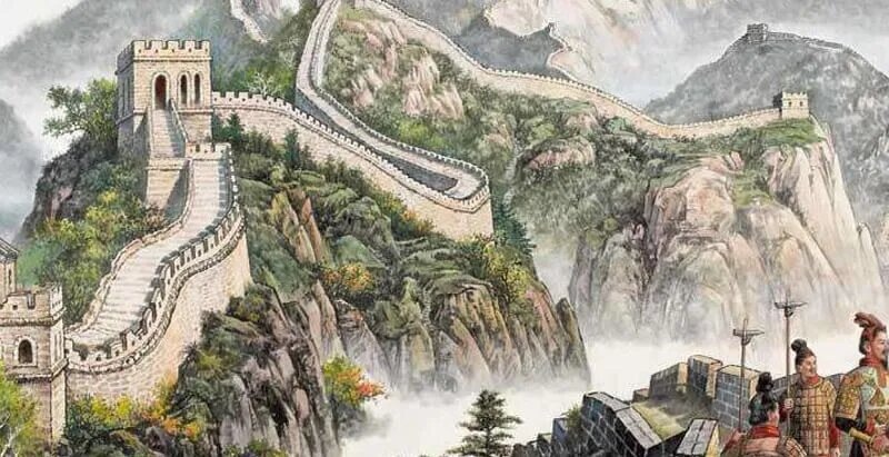 И вот — Великая Китайская стена. Начали её в Чжоу, чтобы отбиваться от кочевников, но настоящую крепость слепил Цинь Шихуанди позже. Её перестраивали раз за разом: в Мин — до 8850 км, с башнями и сигнальными огнями. А малоизвестный факт: стена не сплошная, а сеть укреплений — и она не спасла от монголов, но стала символом: "Кто стену строит, тот вечно стоит".