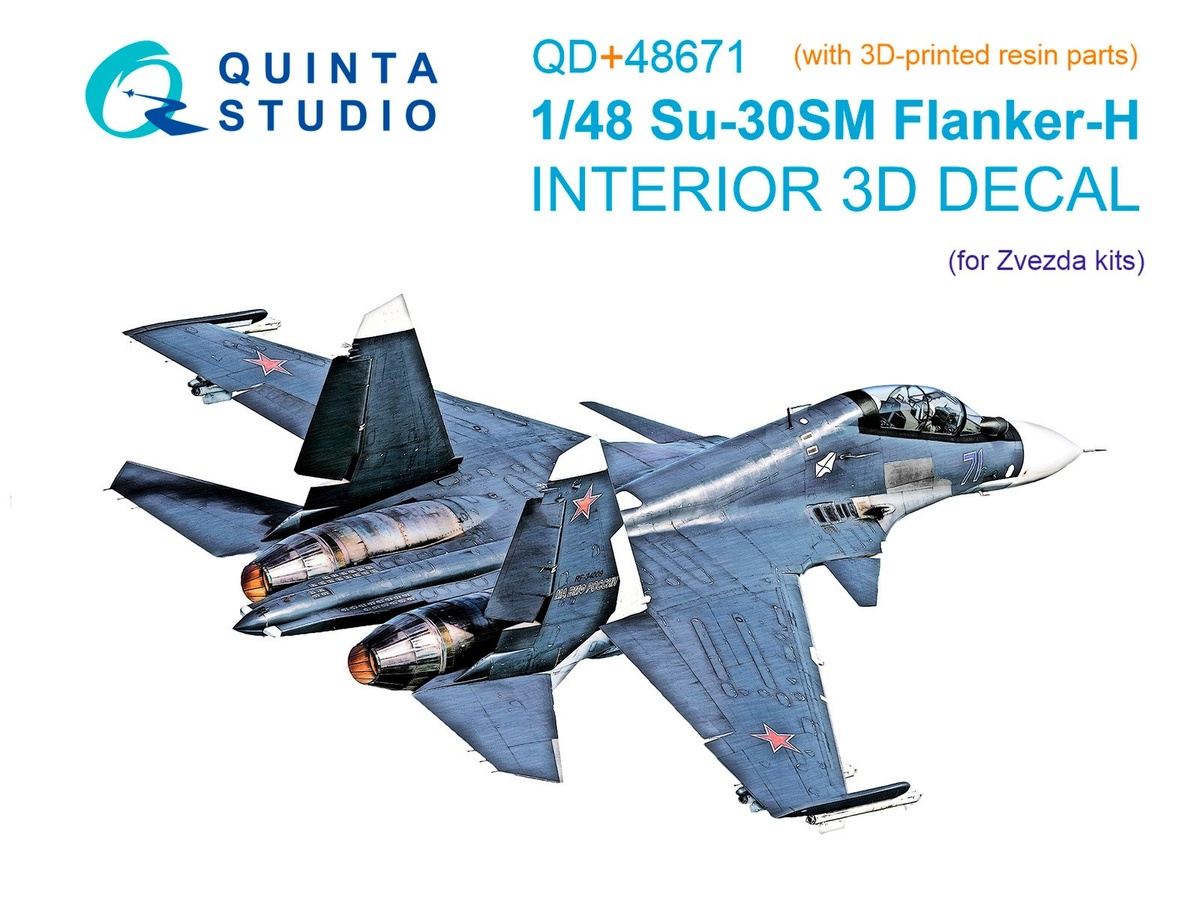 Quinta modelling studio из Пензы выпустила "трехмерную декаль" и выращенные на 3D-принтере детали для кабины кабины модели Су-30СМ в масштабе 1/48 от "Звезды":