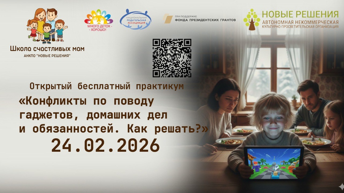 КАК РЕШАТЬ? 👉Приглашаем вас во вторник, 24 февраля, в 12-00 мск на очередное занятие в бесплатной онлайн «Школе счастливых мам»! 🤔На занятии 24 февраля мы обсудим вопросы: — Чего стоит избегать в общении с ребенком по поводу гаджетов? — Как в семье вводить правила по использования гаджетов, выполнению домашних дел? — Какие признаки говорят о том, что нужно обратиться за помощью в решении конфликтов по поводу гаджетов к психологу? — Чем заменить гаджеты и как предложить ребенку альтернативу? ✅В результате вы: — Сможете применить практические инструменты и рекомендации по управлению временем, проведенным ребенком перед экранами устройств; — Узнаете методы профилактики зависимости от гаджетов среди детей разного возраста; — Поймете, как устанавливать границы и правила в семье. Вебинар проведет Наталья Григорьевна Калашникова, доктор пед. наук, профессор, автор и руководитель проекта. ❗Постарайтесь прийти онлайн, по техническим причинам вебинары записываются не всегда! Для того, что