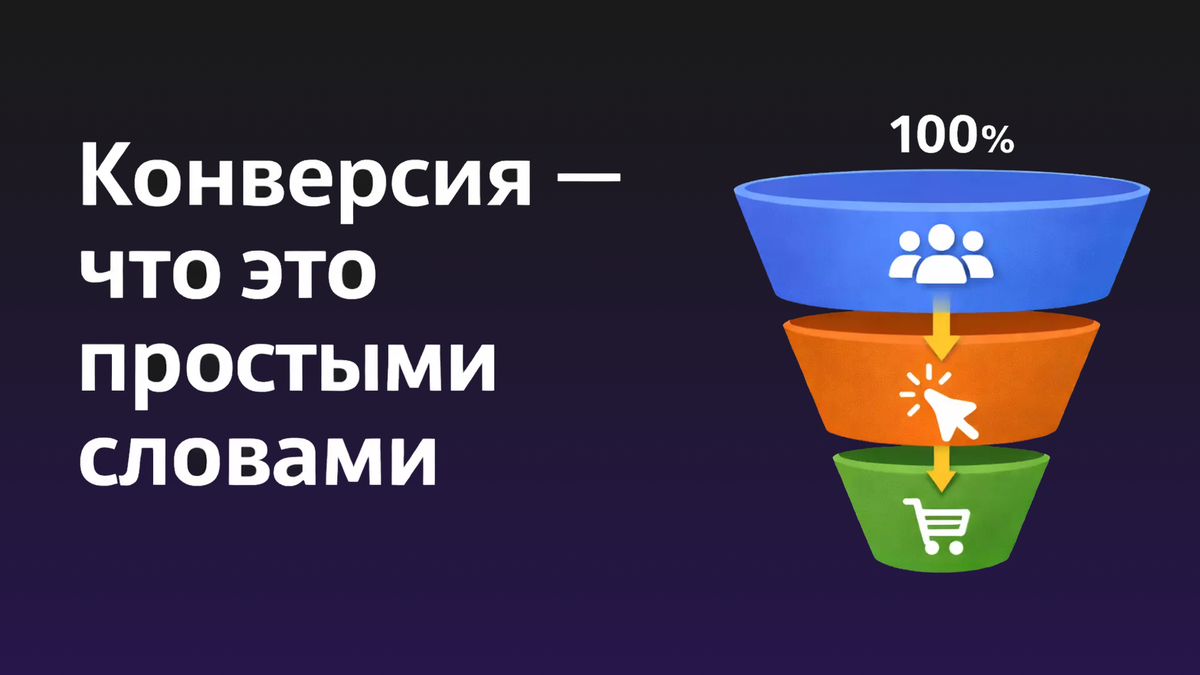 Проще говоря, конверсия показывает, какая доля аудитории “дошла до цели”.
