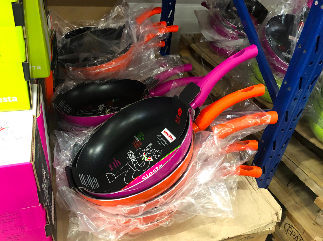 Сначала расскажу про посуду, которая мне особенно понравилась. В продаже есть сковорода Servitta Siesta, диаметр 26 см. Сделана она из кованого алюминия с антипригарным покрытием, ручка с приятным покрытием SOFT TOUCH — в руке лежит удобно, не скользит. Подходит для всех видов плит, даже для индукции, что сейчас немаловажно. Цвета есть разные. Производство Китай, цена 687 рублей. На вид сковорода добротная, такая вполне может стать основной для ежедневной готовки.