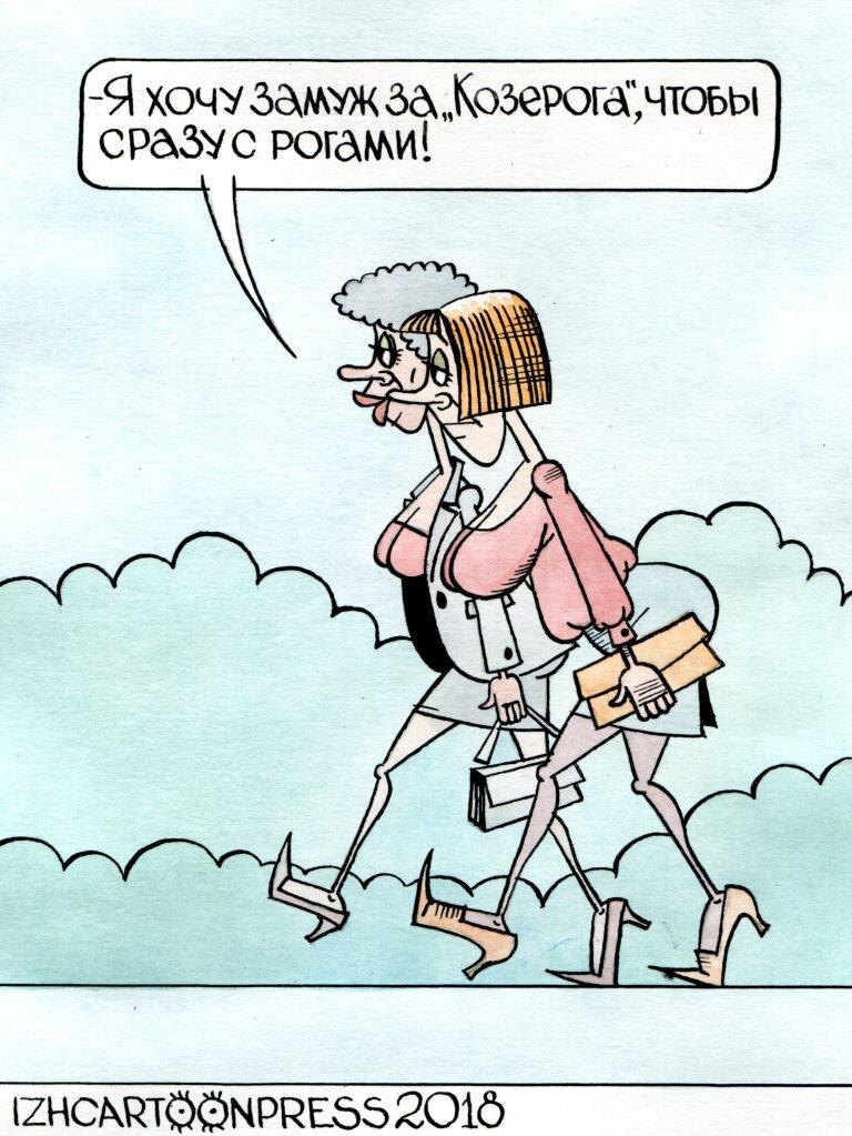Дамы с выдающимися формами и флегматичные мужики на карикатурах Владимира Ижболдина