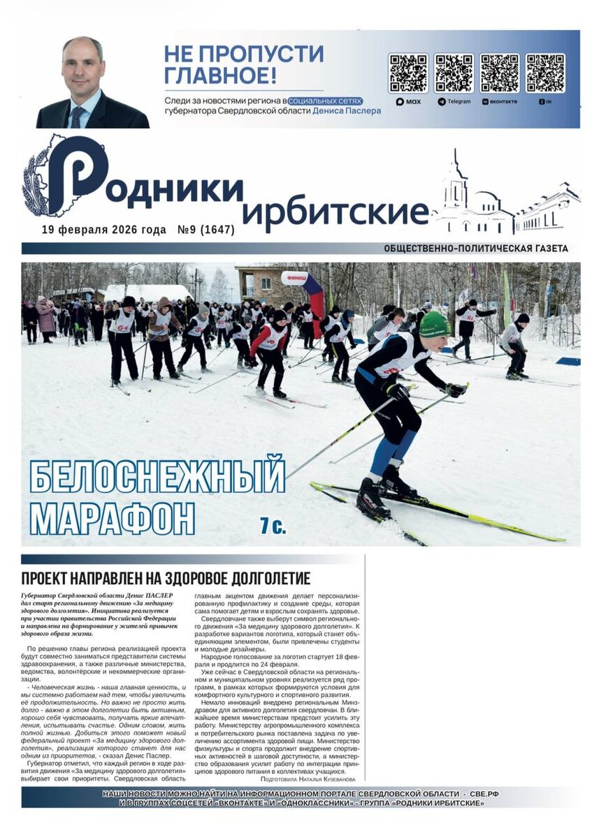 »👇 ПОДВИГ ДЕВЯТАЕВА - ОРИЕНТИР ДЛЯ ПЬЯНКОВСКИХ ПАТРИОТОВ Военно-патриотическому клубу «Патриот» Пьянковской школы присвоено имя Героя Советского Союза Михаила Петровича ДЕВЯТАЕВА. Торжественное событие состоялось на минувшей неделе. БЕЛОСНЕЖНЫЙ МАРАФОН Самое масштабное спортивное мероприятие зимы состоялось в минувшую субботу. К нему присоединились более 400 жителей Ирбитского района. СЕРДЦЕ В РАБОТЕ О своей особенной, но такой важной профессии Полина ЗВЕРЕВА рассказывает с блеском в глазах. С первых минут беседы с ней появилось стойкое ощущение: работает она по любви.