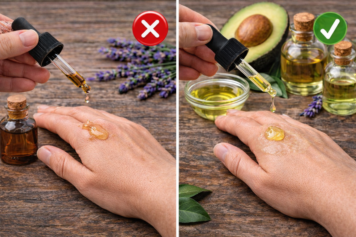 Эфирное масло — это не «косметическое масло», а концентрат. Например, чтобы получить всего 1 мл масла лаванды, нужно переработать большое количество цветов. Поэтому при прямом нанесении можно получить раздражение или даже химический ожог.