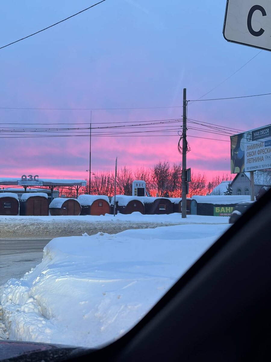 Какой красивый закат. Сегодня опять ожидается снег.
