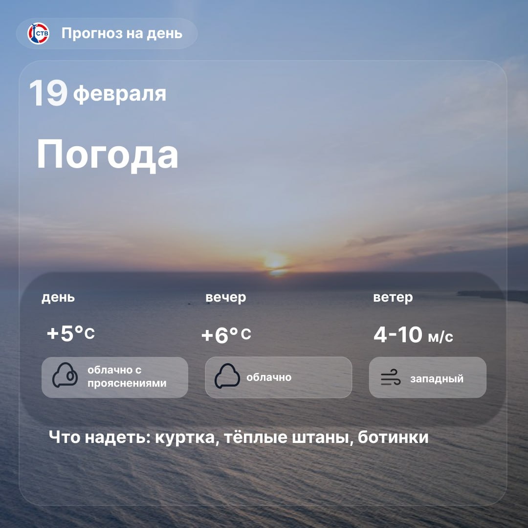 Сегодня днём около +5°C, облачно с прояснениями, к вечеру потеплеет до +6°C. Утром возможны дождь со снегом и гололедица. Будьте внимательны и осторожны на дорогах. 📺 СТВ в MAX