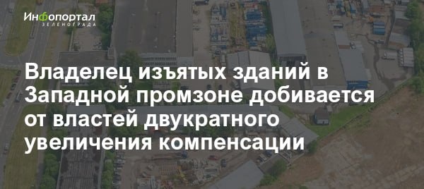 Владелец изъятых зданий в Западной промзоне добивается от властей двукратного увеличения компенсации Столичный арбитраж уже третий год разбирается в споре между властями Москвы и компанией «Центротехмонтаж» о размере компенсации за недвижимость, изъятую для расширения технополиса в Алабушево. Власти оценили ее в 221 млн рублей. Инфопортал изучил материалы судебных разбирательств — подробности в нашей публикации 🔵 Прислать новость Инфопортал Зеленограда в соцсетях ⬇️ 🔵 Telegram 📲 MAX 🌐 VK