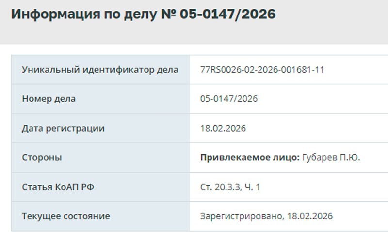 Против одного из лидеров «русской весны» Павла Губарева составили протокол о «дискредитации» армии (ч. 1 ст. 20.3.3 КоАП). Материалы поступили в Таганский районный суд Москвы. В 2014 году Павел Губарев стал одним из лидеров вооружённых формирований на Донбассе. Тогда же его избрали «народным губернатором» во время митинга в Донецке, но формальных должностей он не получил. Губарев вернулся в Россию, а после 24 февраля 2022 года ушёл участвовать в боевых действиях рядовым на стороне российской армии. Губарев ведёт телеграм-канал, у него около 35 тыс. подписчиков. Павел Губарев сказал РБК, что не знает, с чем связано преследование: «Кое-кому не понравились мои тексты. Факт оцениваю как беспросветную глупость. Никаких последствий для себя не ожидаю». Но в своём телеграм-канале он предположил, что донос связан с деятельностью замначальника Главного военно-политического управления ВС РФ, командира чеченского формирования «Ахмат» Апти Алаудинова. Подписаться| Прислать новость| Помочь бус