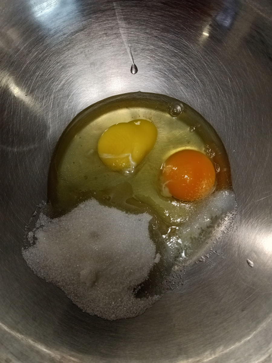 Яйца, сахар и соль хорошо взбиваем.