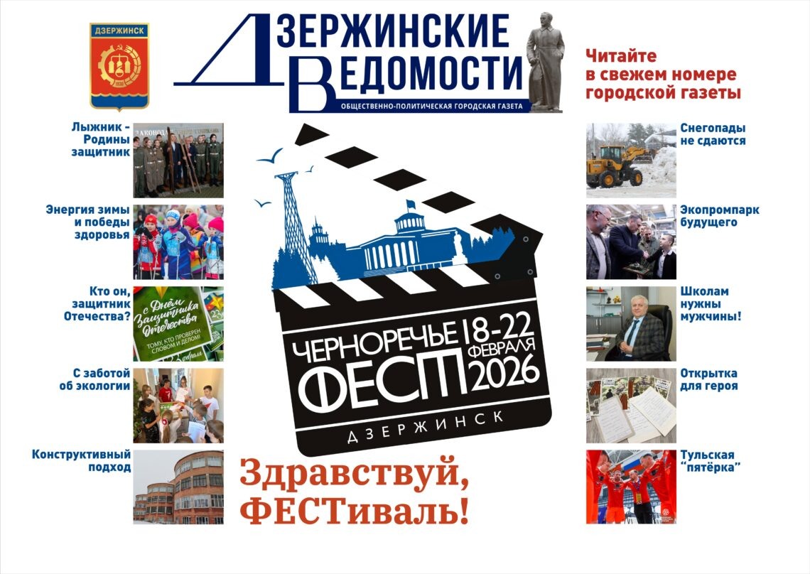 Главное событие – открытие IV фестиваля отечественного кино «Черноречье фест». Как поменялись его формат и тематика – в отчете с пресс-конференции. Темя Дня защитника Отечества красной нитью проходит через весь номер. Вниманию читателей предлагается традиционный опрос «Кто он, настоящий защитник Отечества сегодня». Один из основных материалов – зарисовка о единственном в Дзержинске директоре-мужчине школы. Он рассказывает, почему мужские представители профессии не спешат работать в общеобразовательных учреждениях. В Дзержинске прошел праздник спорта и здоровья, приуроченный к «Лыжне России». На старт вышло более 1000 дзержинцев. Праздничную программу широкой Масленица подготовили организаторы для жителей городского округа. Основное представление с дегустацией блинов ждет горожан в выходные дни.