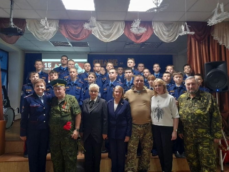 В преддверии Дня Защитника Отечества в Каменском генерала Ф. П. Денисова казачьем кадетском корпусе состоялась встреча кадет с Заслуженным военным летчиком В. Ю. Водостоем, ветераном пограничных войск, «афганцем» В. А. Кашубой, ветераном СВО Д. А. Клюевым, заместителем председателя городского совета ветеранов В. А. Красивской, секретарем городского совета ветеранов Л. Д. Фетисовой, социальным координатором фонда «Защитники Отечества» Т. М. Вылуск. В торжественной тишине кадеты смотрели кадры хроники Афганской войны, начиная с декабря 1979 года по 15 февраля 1989 года. Какое мужество и отвагу проявили наши ребята в чужой гористой стране! Это, действительно, герои нашего времени. Выполнив интернациональный долг, они вернулись домой живыми на Родину. Чеченская война тоже показала силу духа и отвагу наших воинов. Неслучайно на зданиях школ висят мемориальные доски в память о наших ребятах, напоминая нынешним школьникам о том, что они учились в их школах. Минутой молчания почтили память тех