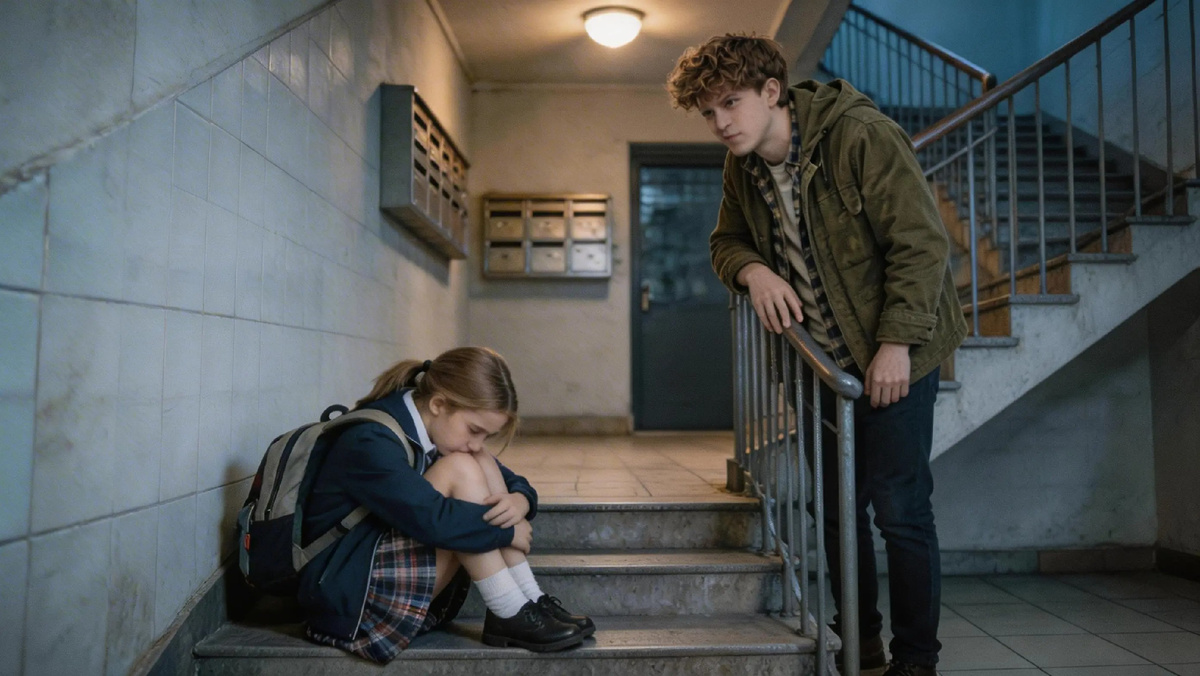 Он толкнул дверь, зашёл. На лестнице, на первой ступеньке, прямо на холодном кафеле, сидела девочка. Лет десяти, в школьной форме, с огромным рюкзаком, который казался тяжелее её самой. Она сидела, обхватив колени руками, и плакала. Тихо, почти беззвучно, только плечи вздрагивали.