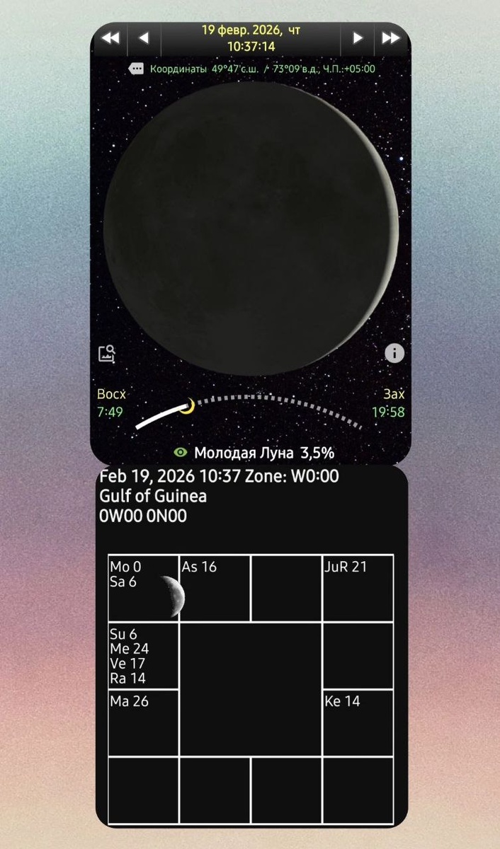 🌛🐦🐦 Ведическая Астрология Молодая Луна в Рыбах. Коридор затмений. РетроЮпитер. 🩵🌛 Луны ещё не видно на небе, но ее тонкий месяц уже потихоньку растёт. В Рыбах Луна затрагивает очень глубокие пласты чувств и ощущений. Ныряет глубоко в поисках того, что не возьмёшь с поверхности. 💜🌛Сегодня лучше уйти в работу с головой, чтобы не тонуть в собственных мыслях, направим энергию в полезное русло. В работе этот транзит может раскрыть важные вещи и моменты, которые вы раньше не замечали и не чувствовали. 🪐🌛На этой неделе, пока Луна молода и свежа, прекрасно браться за реализацию своих задумок, поток пробуждения земли, вибрация природы поспособствует этому.В такие дни мы можем становиться сверхчувствительными, больше слышать и понимать, интуиция обостряется. А потому, особенно полезно прислушиваться, присматриваться и заглядывать внутрь себя, пытаться понять свои ощущения, их источник, почему мы чувствуем именно то, что чувствуем, в чем причина, почему подумали именно так, а не и