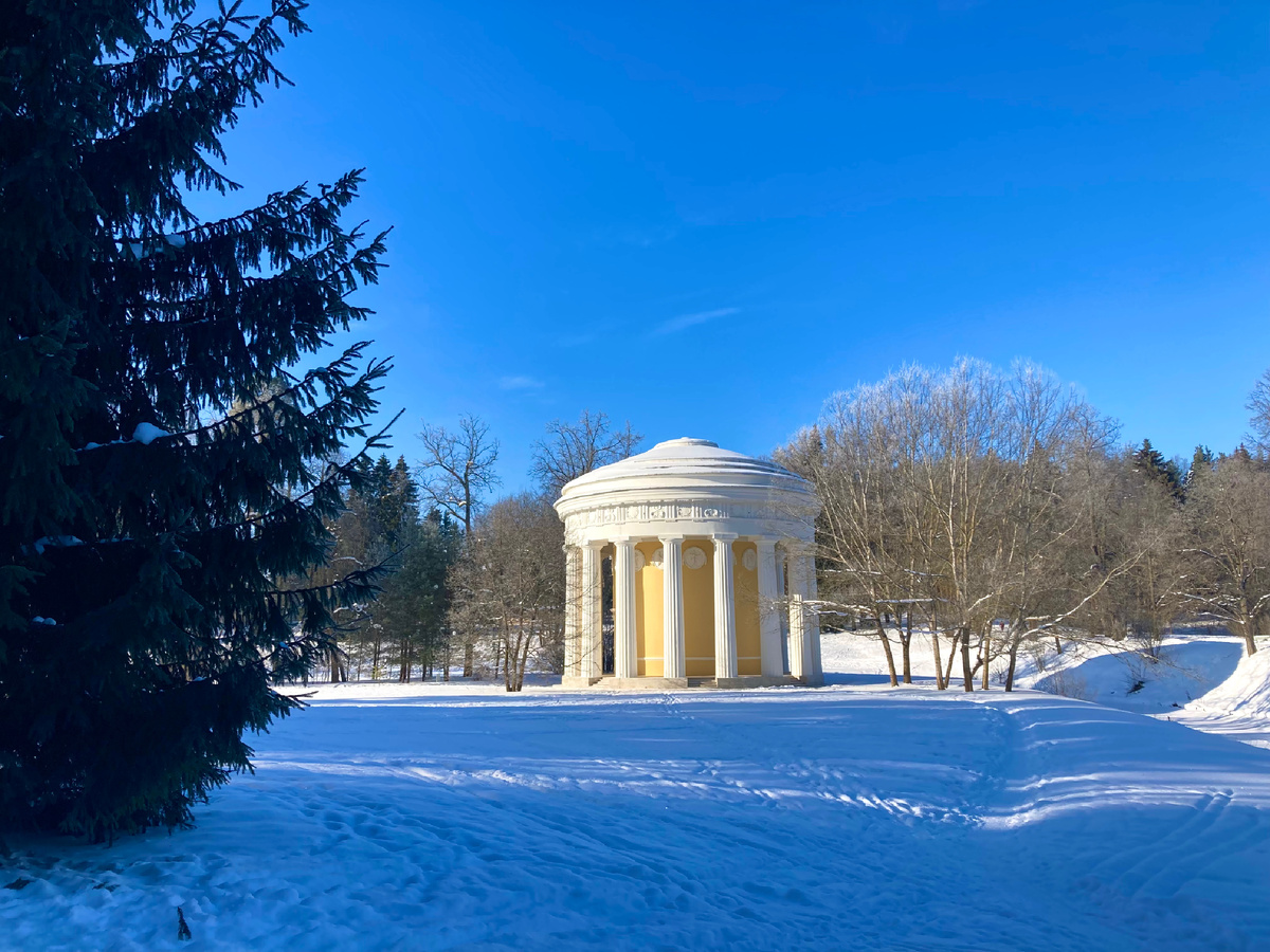 Является первым строением Чарльза Камерона в Петербурге, соединившего природный ландшафт с архитектурой. Зимой контраст античной ротонды особенно выделяется на фоне заснеженного парка, удивляя совершенством пропорций:
