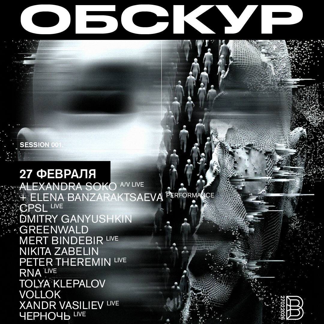 Новая серия. Первый сеанс. Сие ночное собрание учреждается в пространстве клуба и простирается от позднего часа до времени, когда смысл расплывается в сумерках авроры. Обскур — ночь электронного звука, отвлечённого от суеты прямого действия и склонённого к размышлению. Музыка не стремится к телесному напору и не ищет единогласия толпы. Она допускает сомнение, тень, разлад, оставляя слушателю труд и дар внимательного присутствия. Собрание сопровождается действами зрительными — аудиовизуальными работами, перформативными вмешательствами, пребывающими со звуком на равных. В эту ночь будет открыт зал, ранее пребывавший в сокрытии. Двери его были затворены, воздух — недвижим; теперь покои, хранившие молчание, принимают звук и присутствие. Обскур носит характер салонный: здесь дозволены паузы, взгляды, и непроизнесённое ценится выше сказанного. Доля мистификации принята здесь сознательно, как средство сохранить меру недосказанности и служит сохранению внутренней дистанции между событием