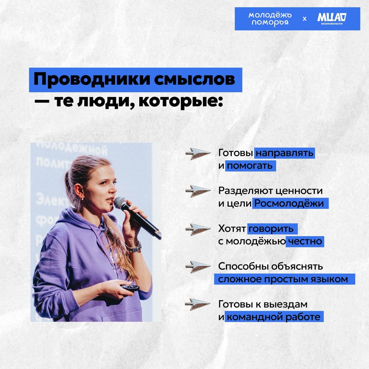 Запущена программа «Проводники смыслов. Новый маршрут» — для тех, кто готов вдохновлять студентов и школьников своим примером и показывать им, какие возможности открывает молодёжная политика региона. Что даёт участие: ⭐️ возможность влиять на молодёжную повестку и формировать будущее Поморья ⭐️ шанс делиться опытом, создавать свои проекты и объединять активных ребят ⭐️ обучение, поддержка от экспертов, круг единомышленников и ресурсы от партнёров А главное — увидишь, как после твоих слов у кого-то загораются глаза ✨ Ответы на все вопросы знает София, психолог областного молодёжного центра. Не стесняйся — спрашивай⚡️ Если тебе от 18 до 45 лет — подавай заявку до 25 февраля по ссылке. Создавай смыслы вместе с нацпроектом «Молодёжь и дети». #молод29 #Команда29 #нацпроекты #молодёжьидети #Росмолодёжь