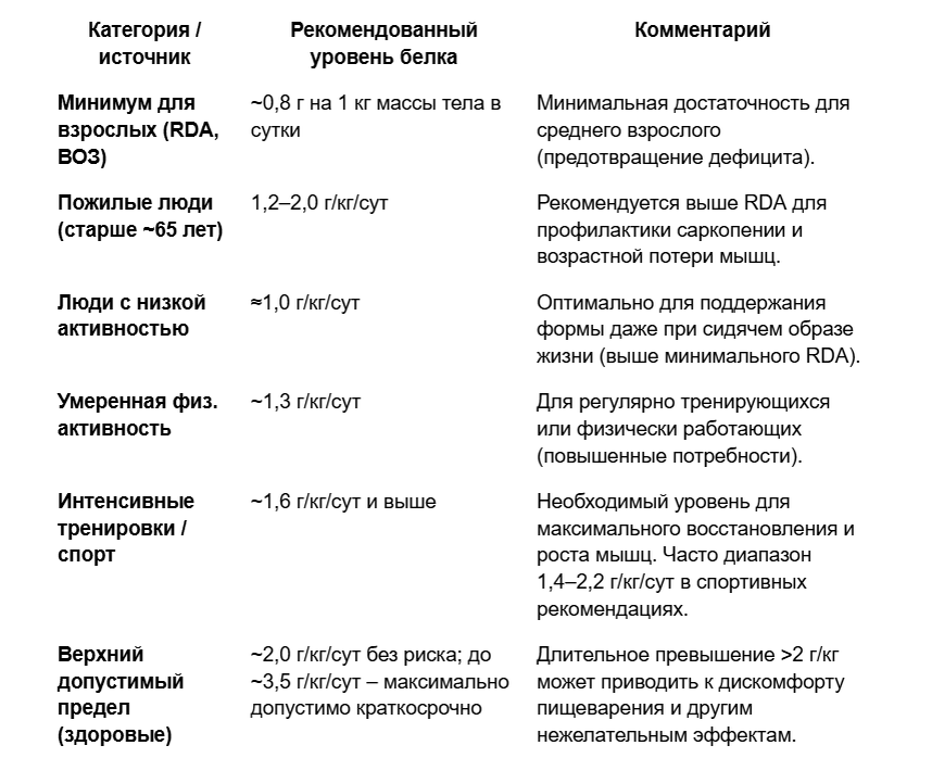И даже в эксперименте у силовых атлетов, потреблявших очень высокой количество белка (до ~3 г/кг) в течение года, не было выявлено никаких признаков ухудшения работы почек или печени по лабораторным показателям. Конечно, такие экстремальные количества – скорее исключение; но в диапазоне до ~2 г/кг для здоровых взрослых данных о вреде НЕТ.