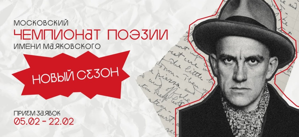 Московский чемпионат поэзии им. Маяковского - это ежегодный поэтический турнир, в котором 64 поэта/поэтессы борются за звание победителя, а также за ценные призы. Судьями в Чемпионате выступают крупные фигуры современного литературного процесса. Они оценивают творчество участников в таких заданиях, как перформанс, поэтический перевод, экспромт и др. С 2021 года местом проведения московских этапов чемпионата поэзии им. Маяковского стала Библиотека поэзии. Возраст участия и наличие публикаций и регалий совершенно не важны! Организаторы стараются сделать чемпионат универсальным, отвечающим вызовам сразу нескольких поэтических сред. Заявка на участие принимаются до 22 февраля 2026 г.
