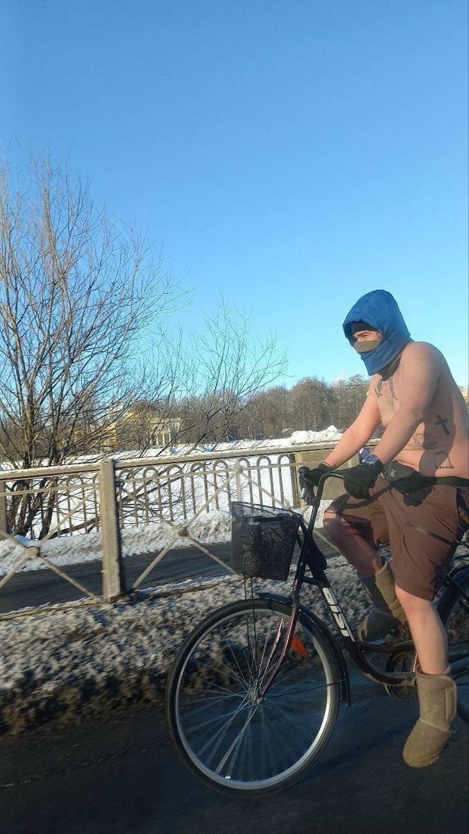 Зато уши в тепле: на окраине Петербурга в -15 заметили нудиста-велосипедиста.