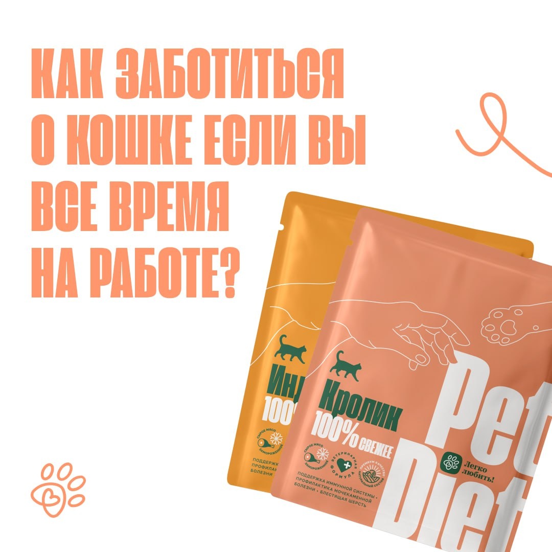🐾 Не всегда есть возможность готовить, взвешивать ингредиенты и контролировать каждый приём пищи. Но это и не нужно. С утра вы просто выкладываете в миску порцию из пакетика Pet Diet — и можете спокойно уходить по делам. Кошка получает свою суточную норму, а вы не возвращаетесь к мыслям о том, всё ли рассчитано правильно. В Pet Diet рацион уже рассчитан и сбалансирован. Один пакетик — это суточная норма питания при соблюдении рекомендованной порции. Что это значит на практике: • не нужно делить мясо и добавки по граммам; • не нужно переживать, хватает ли белка и нутриентов; • не нужно просить близких «правильно покормить»; • вы знаете, что кошка получает полноценный рацион даже в ваше отсутствие. Готовая порция — это удобство для вас и стабильное натуральное питание для кошки. Без переживаний и без постоянного контроля. Pet Diet — когда забота работает даже тогда, когда вы на работе 🐈 Наш сайт - https://pet-diet.ru/