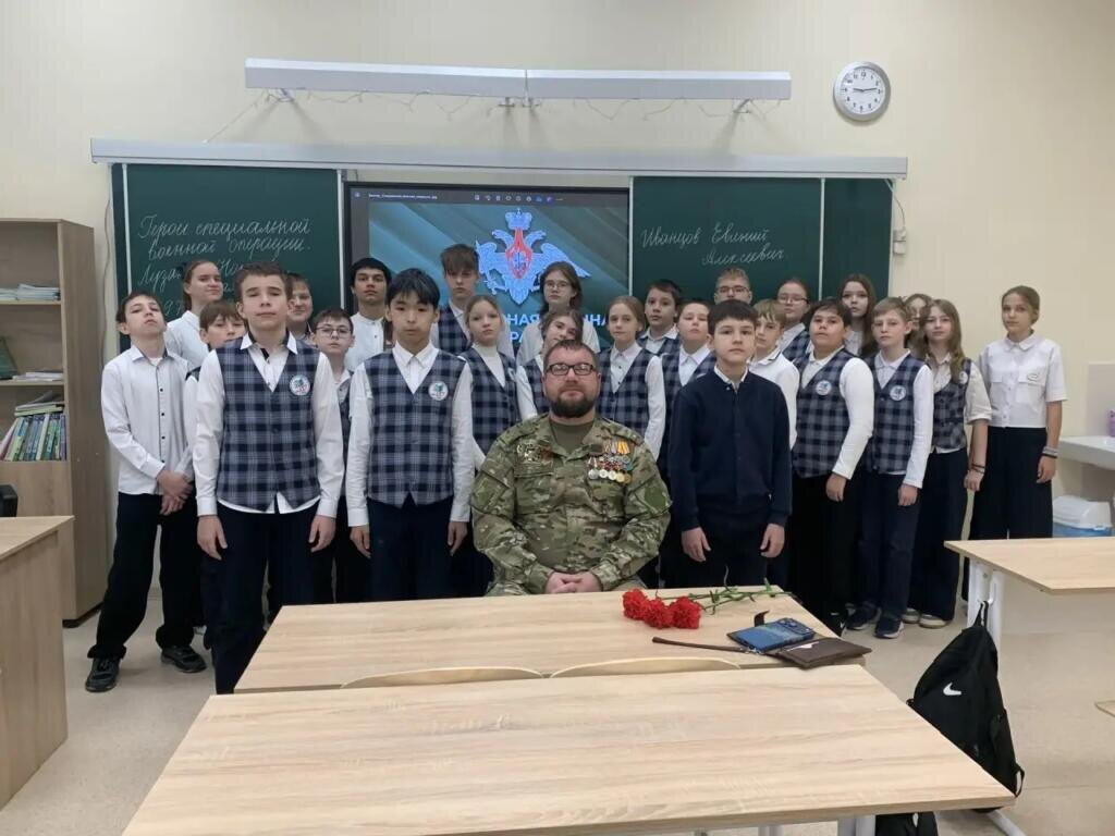 В рамках патриотического воспитания в СОШ №17 прошла встреча с ветераном боевых действий, участником СВО Евгением Алексеевичем Иванцовым Мероприятие открыла классный руководитель Л. В. Квашина, которая обозначила исторический контекст и цели проводимой операции. Евгений Алексеевич поделился с подрастающим поколением личными воспоминаниями: рассказал о специфике несения службы, о полученном ранении и минутах тишины, в которые вспоминал павших друзей. Учащиеся Данир Лузанов и Борис Назаров рассказали о судьбах своих отцов. Старший сержант Хонгор Лузанов героически погиб при исполнении воинского долга в 2023 году. Его боевой товарищ Денис Назаров в настоящее время проходит длительное лечение после ранения, полученного в ходе боевых действий. Ученики проявили живой интерес к рассказу гостя, задав множество вопросов. Подобные встречи способствуют формированию у школьников объективного представления о событиях современной истории и воспитанию уважения к подвигу соотечественников. Завершилось
