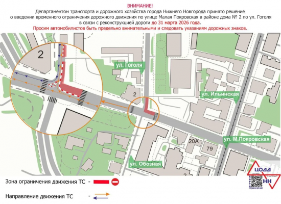 Ограничение действует на перекрестке с улицей Гоголя, сообщили в администрации Нижнего Новгорода.
