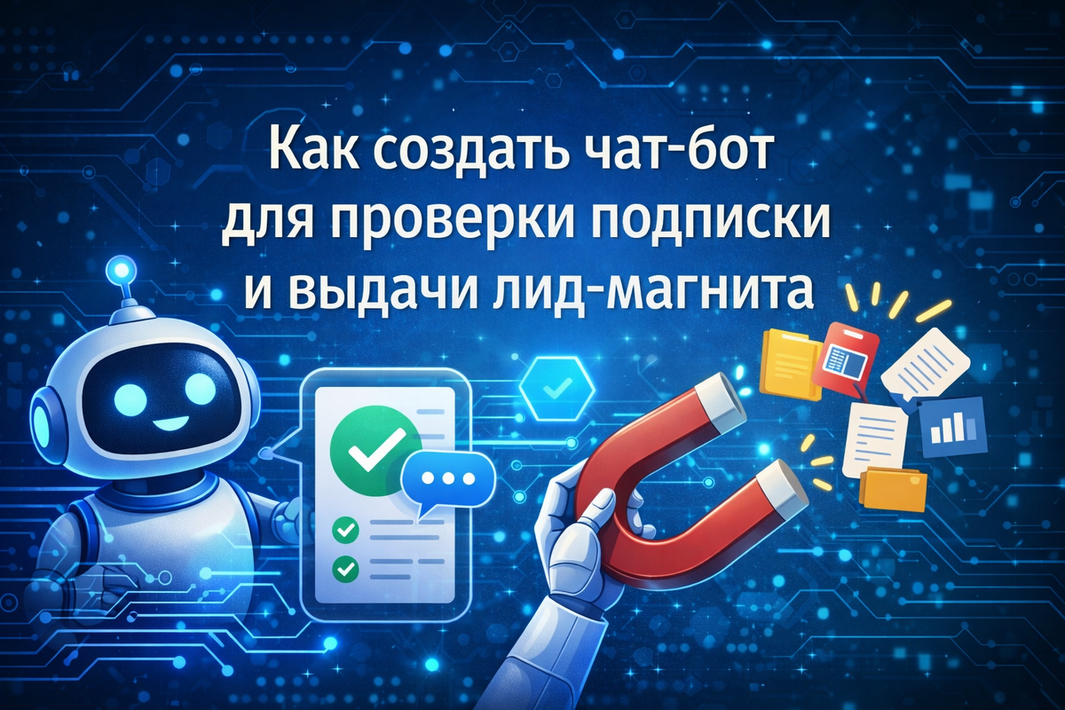 Задачи бота: проверка подписки на канал и выдача лид-магнита в формате видео. На самом деле, лид-магнитом может быть что угодно: pdf, документ или доступ к таблице. Шаги одинаковые.