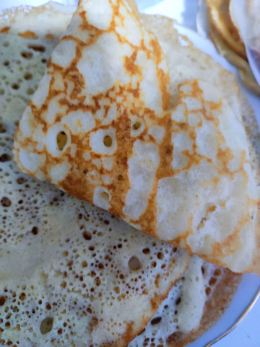 Предлагаю рецепт блинчиков без яиц и молока, получаются очень пышные и вкусные.
