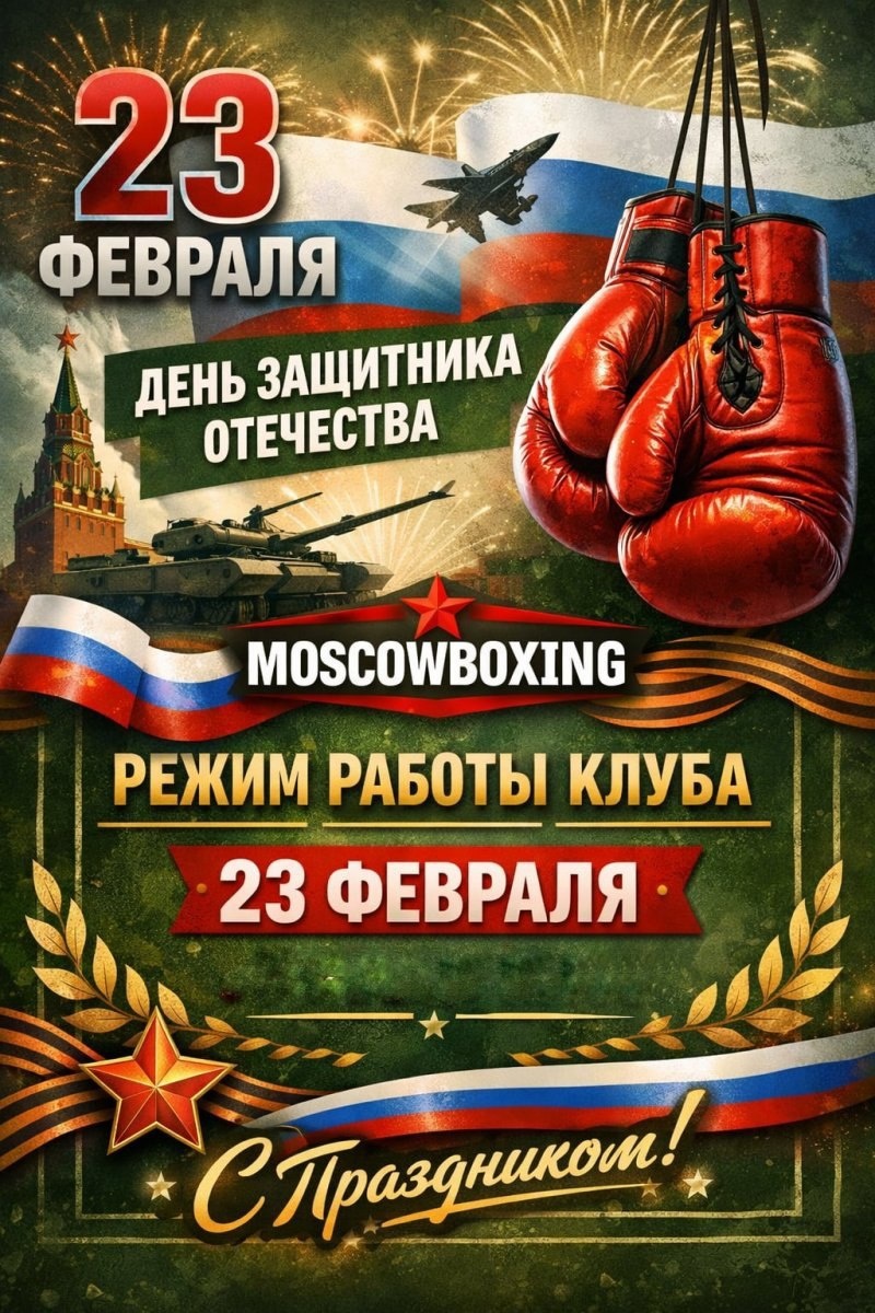 Клуб МОСБОКС поздравляет с 23 февраля — с Днём защитника Отечества! Желаем силы, уверенности и новых побед — в ринге и в жизни