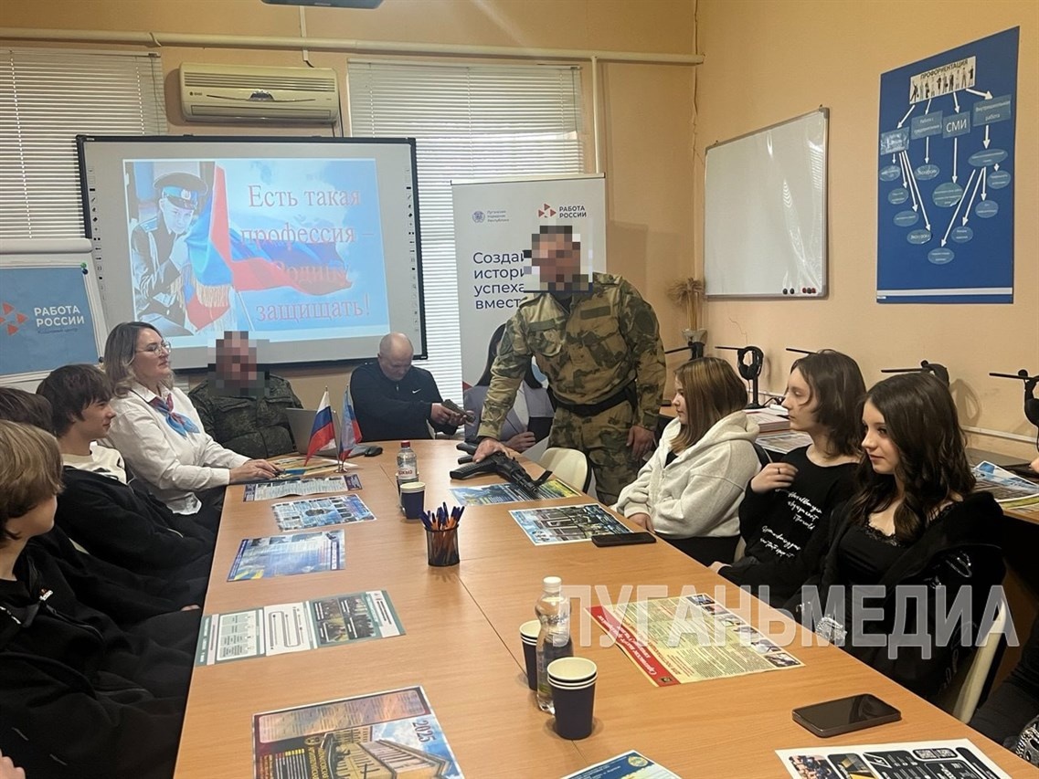 Сегодня, в преддверии Дня защитника Отечества, в молодежном клубе «PROF_ориентир» при территориальном отделении Государственного казенного учреждения «Республиканский центр занятости населения Луганской Народной Республики» в Беловодском районе прошла встреча на тему «Есть такая профессия – Родину защищать». Гостями мероприятия стали представители военного комиссариата Беловодского района и военнослужащий Росгвардии, которые рассказали о ключевых моментах осознанного профессионального выбора и военных профессиях. Важными темами разговора стали значимость профессионализма, развитие личной дисциплины, выносливости и способности быстро реагировать на любые ситуации. Эти качества нужны не только в рамках военной службы, но и помогают молодым людям формировать лидерские качества и укреплять уверенность в себе. Представители военного комиссариата познакомили подростков со специализированными учебными образовательными учреждениями, где возможно получение военных профессий, пояснили порядок за