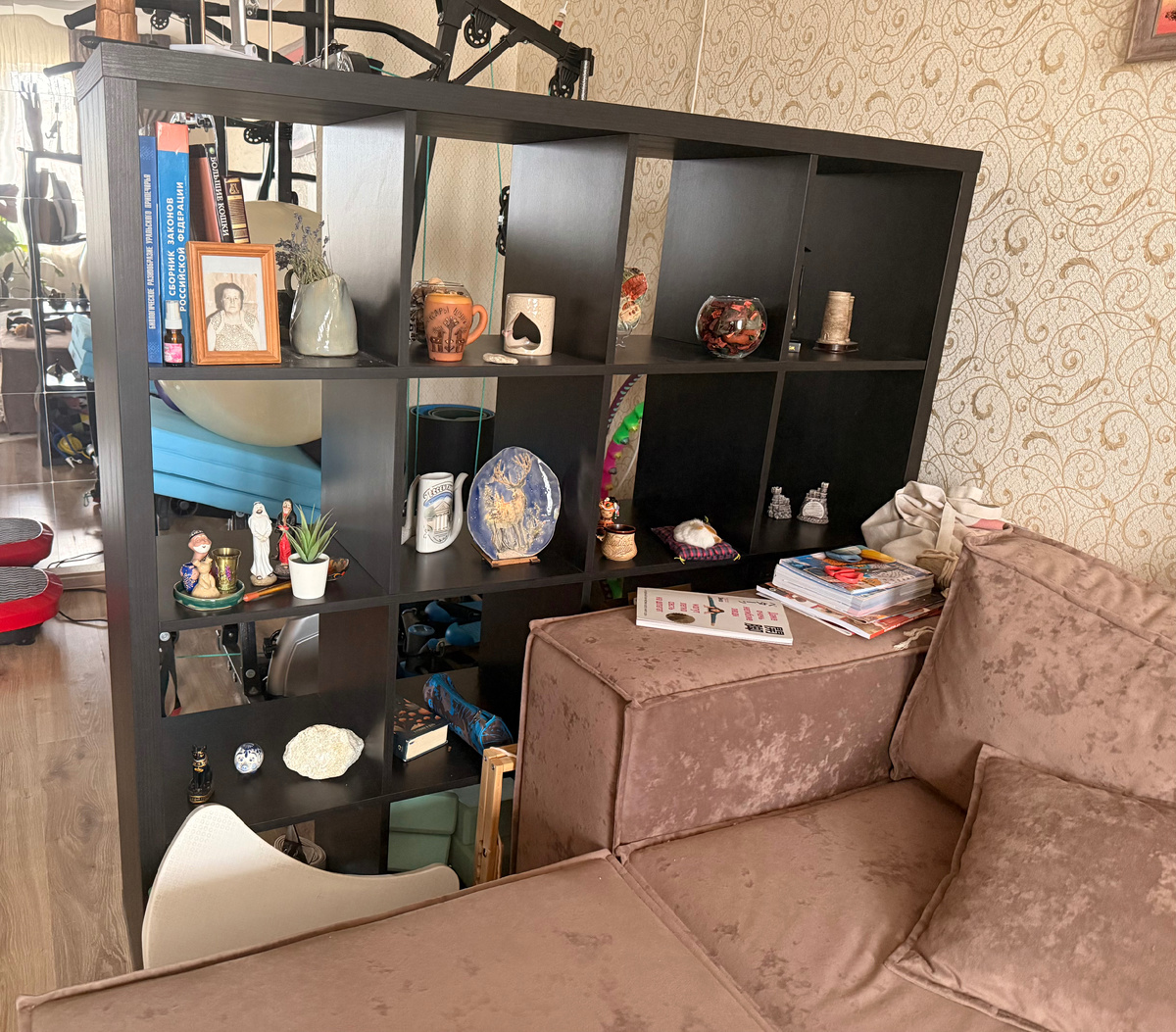 Я просто убрала спорт из гостиной и заново собрала стеллаж.