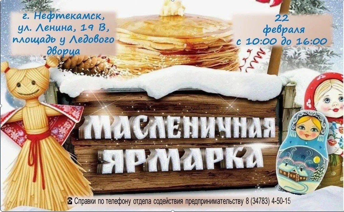 !✨ Нефтекамск прощается с зимой! Администрация ГО г. Нефтекамск приглашает жителей и гостей города на Всероссийскую праздничную ярмарку, которая пройдет в рамках празднования Масленицы! 📆 22 февраля 2026 года на площади у Ледового дворца. 🕰️ Всероссийская ярмарка откроется с 10:00 и будет радовать посетителей до 16:00. В ассортименте традиционно свежее мясо и мясные деликатесы, свежемороженая рыба, молочная продукция и домашние сыры, натуральный мед и продукты пчеловодства, заготовки, соленья и сухофрукты. Вся продукция проходит строгий ветеринарный контроль. ☎️ За справками обращайтесь по телефону: 8 (34783) 4-74-51. Участники ярмарки могут получить пропуск в Межрайонной ветеринарной станции по адресу: ул. Парковая, 2, информация по телефону: 8 (34783) 4-49-53. 👉 Подписаться на канал