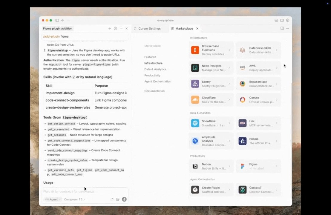 Cursor обновил ИИ-редактор до версии 2.5 и добавил «маркетплейс» готовых плагинов для дизайна, аналитики, работы с данными и других задач