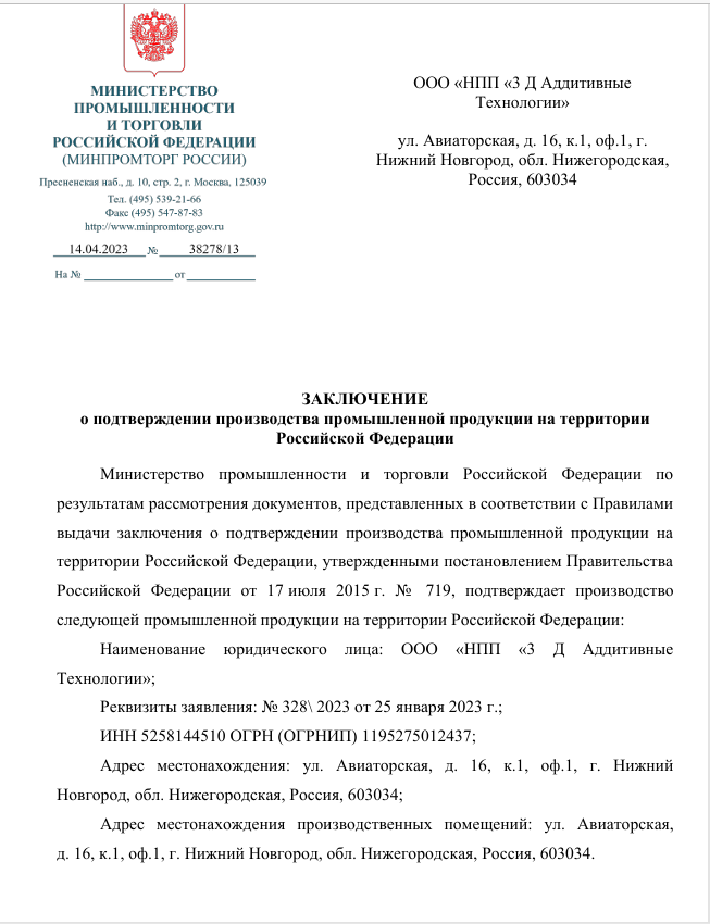 Научно-Производственное Предприятие «3 D Аддитивные Технологии» с 2018