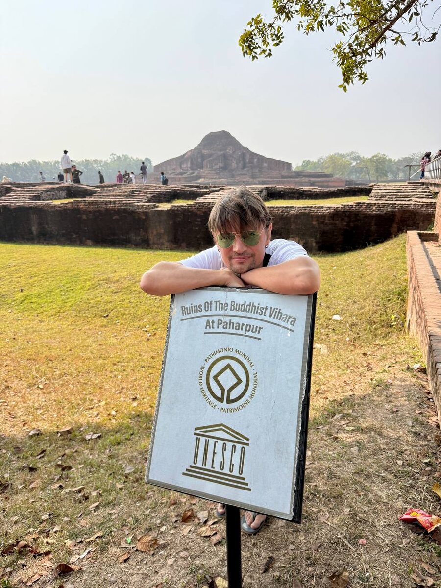 (25.031072, 88.976923) Сомапура Махарвира как Пахарпур – это руины гигантского буддийского монастыря VIII века. Это целый университет своего времени. На площади около 11 гектаров по периметру расположились 177 монашеских келий. В центре – огромный храм крестообразной формы высотой когда-то около 30 метров. Пахарпур был одним из крупнейших буддийских центров от Индии 🇮🇳 до Юго-Восточной Азии. Учёные считают, что именно архитектура Пахарпура повлияла на храмы Мьянмы 🇲🇲, Явы 🇮🇩 и Камбоджи 🇰🇭. В XIII веке комплекс забросили – регион захватили мусульманские армии, буддизм постепенно сошёл на нет . Официально в Пахарпуре запрещено летать на дроне и «лазить» по комплексу. Но мы в замечательном Бангладеше 🇧🇩, где если хорошо попросить, почти все становится возможным ) Правильных ответов на вопрос в предыдущем посте было два - на таком чудесном автобусе 🚌 мы ехали к самолету ✈️авиакомпании US Bangla, чтобы долететь до Пахарпура ) Победителя выбрал рандомайзер) Поздравляем @st_i