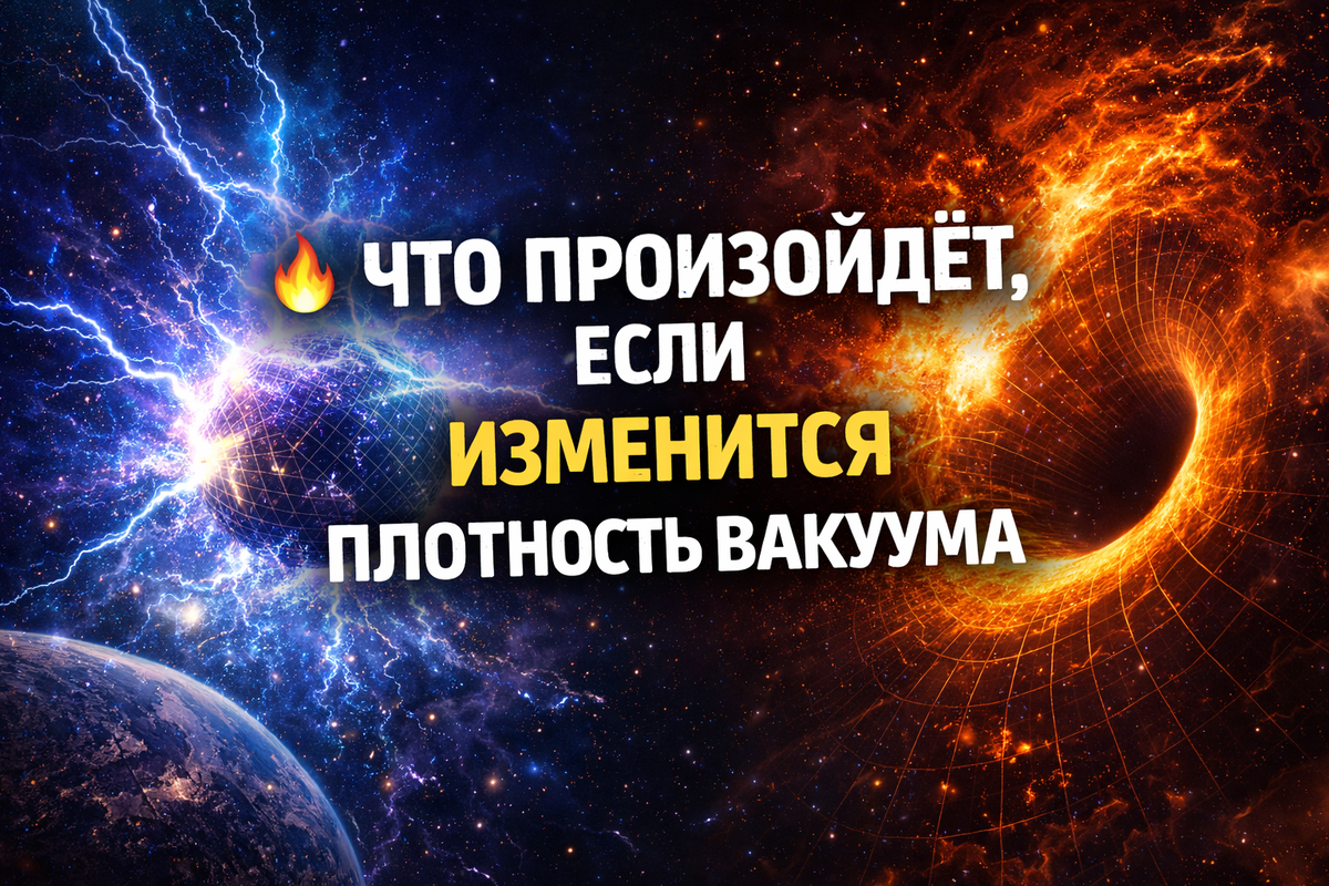 Это состояние с минимальной энергией, в котором постоянно происходят квантовые флуктуации. И вот здесь начинается самое интересное. Если изменится плотность вакуума - изменится сама структура реальности. Разберем, что это значит без фантастики, только в рамках известных теорий. Согласно квантовой теории поля, даже в полном отсутствии частиц пространство не является пустым. В вакууме: Эта энергия связана с тем, что мы называем темной энергией - причиной ускоренного расширения Вселенной. Сегодняшняя модель космологии предполагает, что плотность энергии вакуума крайне мала, но не равна нулю. Она определяет: Если плотность вакуума увеличится - расширение ускорится.