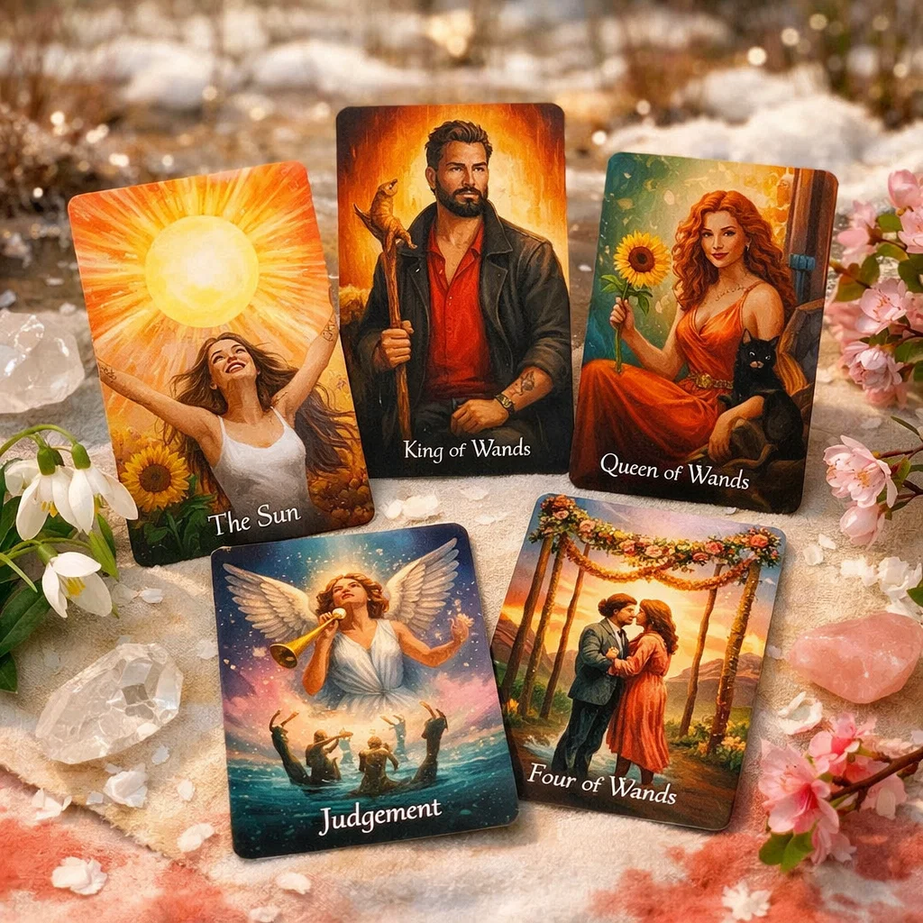 Спасибо каждому за лайки, подписки, комментарии, донаты! 🙏❤️ Вы вдохновляете меня создавать новые расклады и делиться важными посланиями. Пусть всё добро возвращается к вам сторицей! 💖 Девочки, я редко это говорю так прямо, но здесь ощущение именно судьбы. Не случайной встречи. Не кармического урока. А соединения, которое было запланировано задолго до того, как вы вообще начали что-то искать. На дне колоды — Солнце. И это не просто счастье. Это пробуждение. Это когда рядом с человеком вы начинаете чувствовать себя живой по-настоящему. Не удобной. Не терпеливой. Не сильной через боль. А живой, светящейся, наполненной. В раскладе вы выходите парой — Король Жезлов и Королева Жезлов. Одна стихия. Один огонь. И это не про конфликт характеров. Это про совпадение масштаба. Вы будете смотреть на него и видеть себя — по силе, по амбициям, по темпераменту. И это редкое ощущение узнавания произойдет быстро. Без долгих сомнений. Между вами сразу встает энергия Четверки Жезлов. Это союз. Дом. Общ